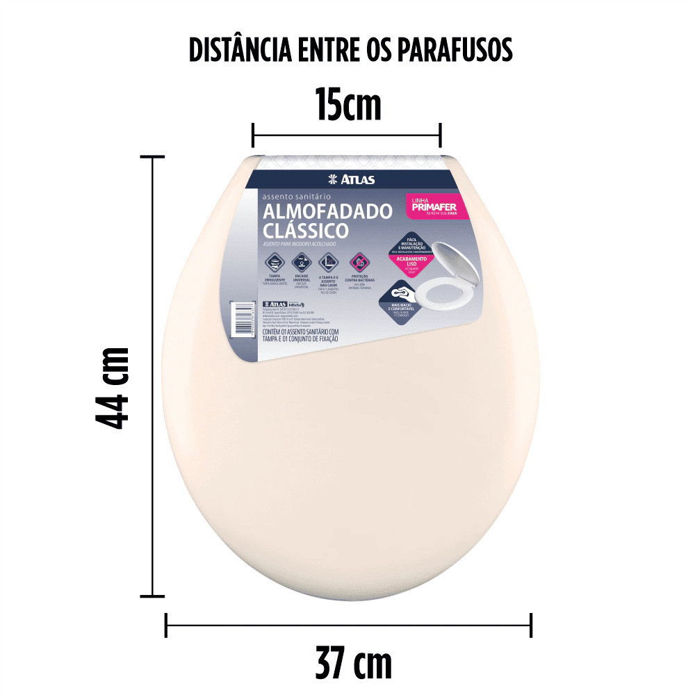 O Assento é almofadado, com design clássico, adapta-se a qualquer banheiro inclusive para aqueles lavabos e banheiros exclusivos para o usuário idoso 60+. O assento sanitário Atlas é Macio e Confortável é a escolha perfeita para consumidores exigentes.