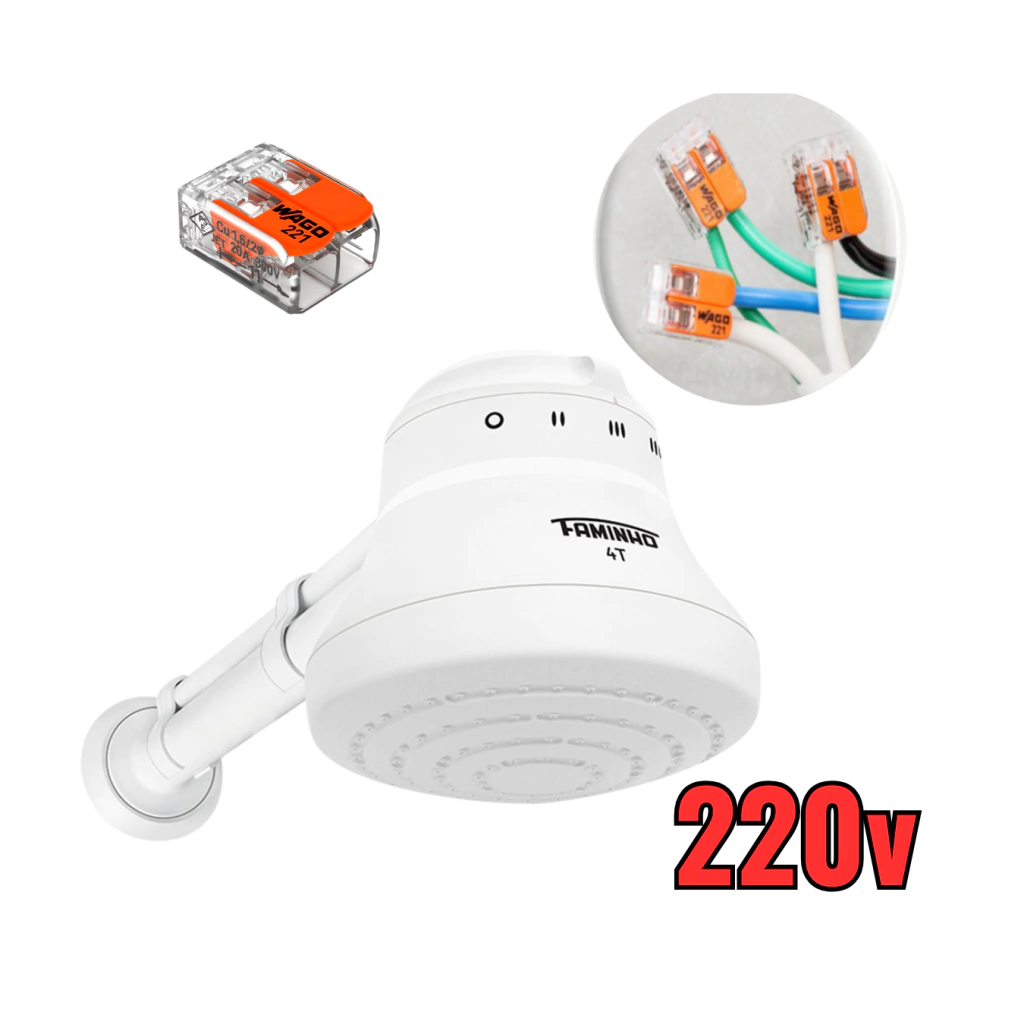 Chuveiro Fame Branco 4t 6800w 220v e Kit 3 Conector Wago 221-612