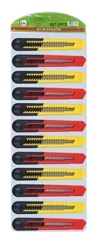 Estiletes de Plástico Lâmina 18mm Trava de Segurança 12 Peças.