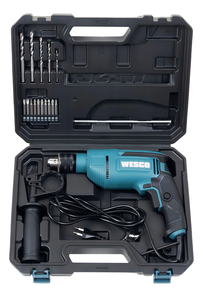 Furadeira De Impacto com maleta Wesco + 5 brocas (10mm, 8mm, 6mm, 5mm e 4mm) e 10 bits philips e fenda (variados tamanhos)