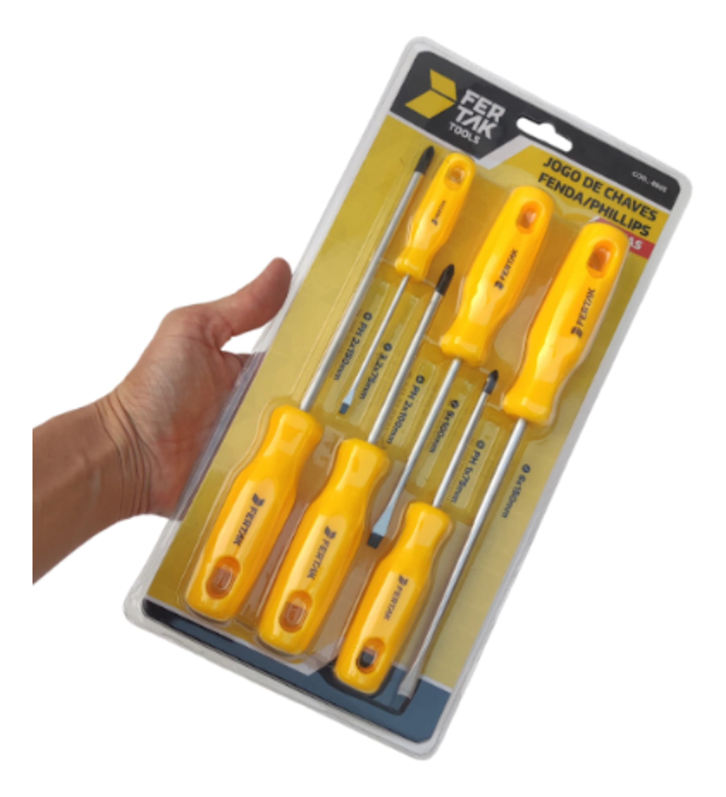O Jogo de Chaves de Fenda e Philips Fertak é o kit ideal para quem busca eficiência, durabilidade e conforto em atividades profissionais ou reparos domésticos. Versátil e indispensável, este conjunto é perfeito para uso em eletrônica, carpintaria, montagem de móveis, manutenção automotiva e muito mais.